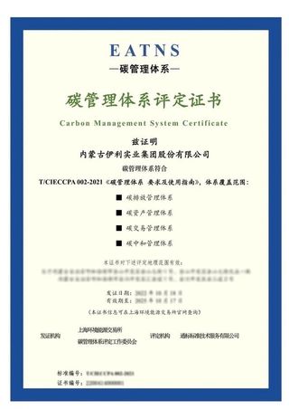 SGS聯(lián)合上海環(huán)交所授予伊利集團碳管理體系評定證書