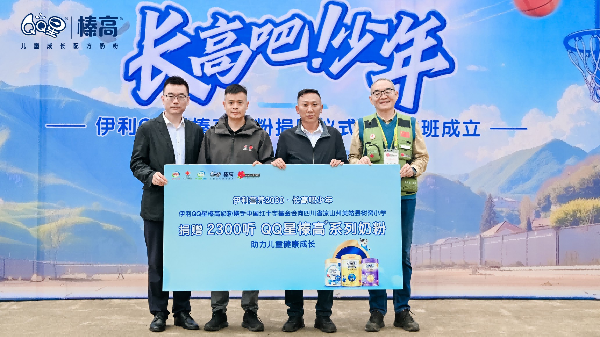 5月27日,伊利QQ星榛高奶粉攜手中國紅十字基金會開展“伊利營養(yǎng)2030·長高吧!少年”公益行動,為四川省涼山彝族自治州美姑縣瓦候鄉(xiāng)樹窩小學(xué)捐贈QQ星榛高系列奶粉2300聽,幫助該校成立“榛高博愛籃球校隊”。并聯(lián)動合作伙伴攜手四川省索瑪基金會冠名“榛高班“。